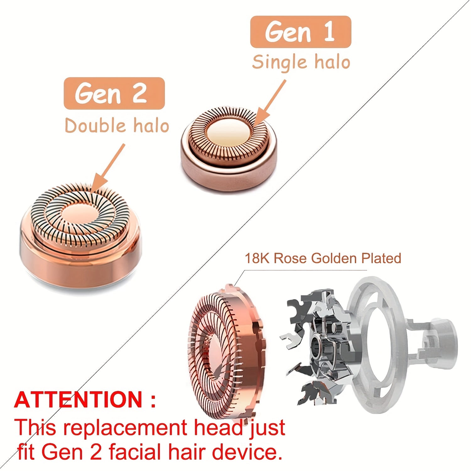 4pcs Facial Hair Remover Replacement Heads, Replacement Blades For Finishing Touch Flawless Generation 2 Hair Removal, Double Halo Painless And Gentle, For Women