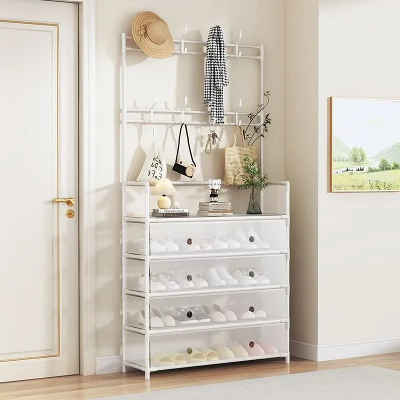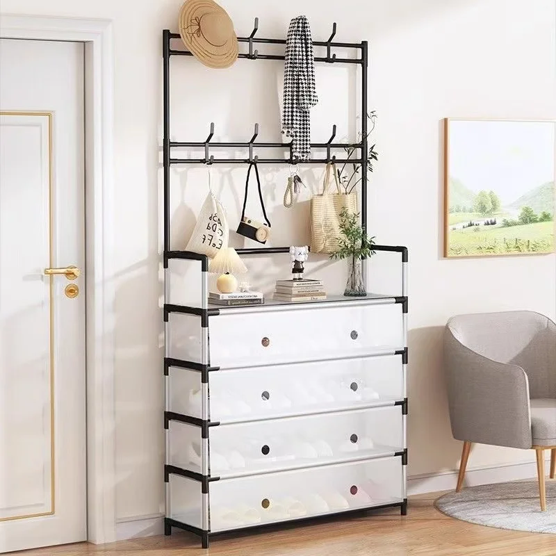 80cm PVC Cover Simple Integrated Shoe Rack Coat Hat Rack Strong Load-bearing Bedroom Hanger Shoe Cabinet Storage shelf