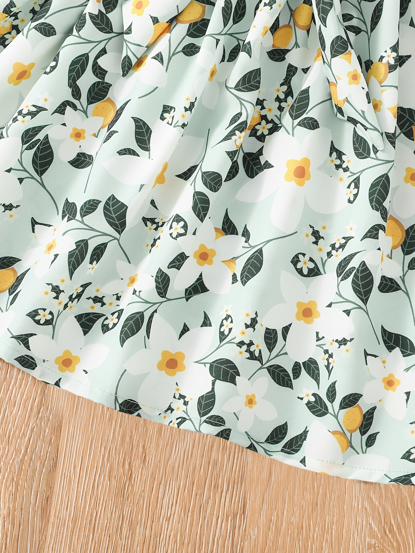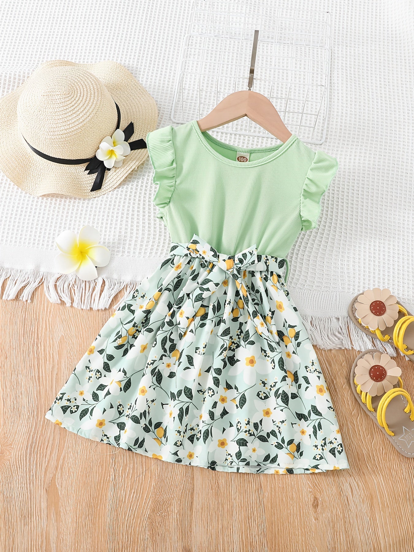 Adorable Toddler Princess Dress - Ruffled Sleeves, Floral Pattern, Belted Waist, Perfect for Party, Summer, Kids' Special Occasions - High-Quality, Comfortable, and Stylish Summer Clothes for Little Girls