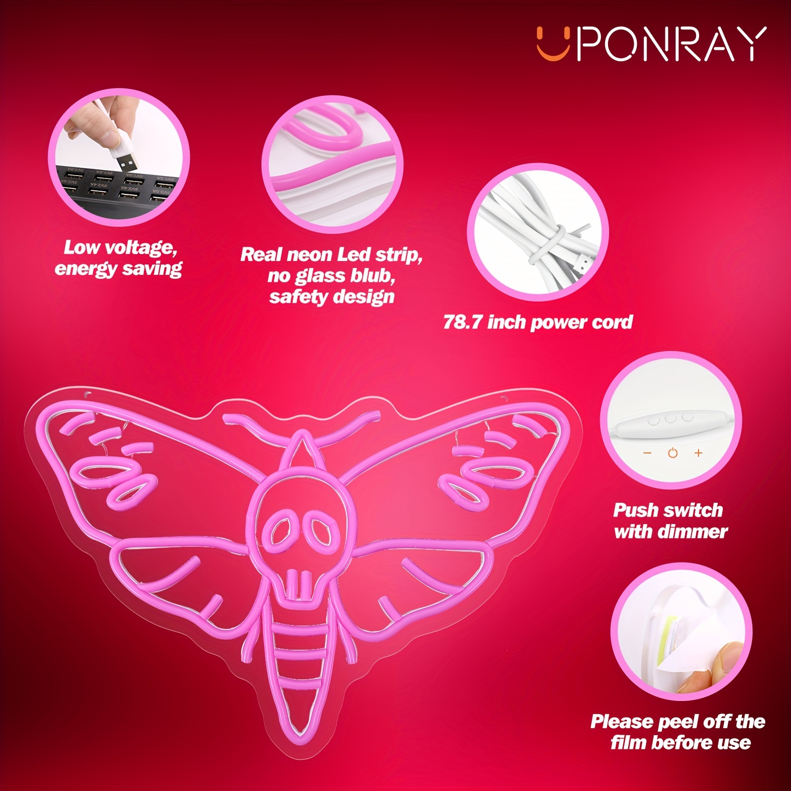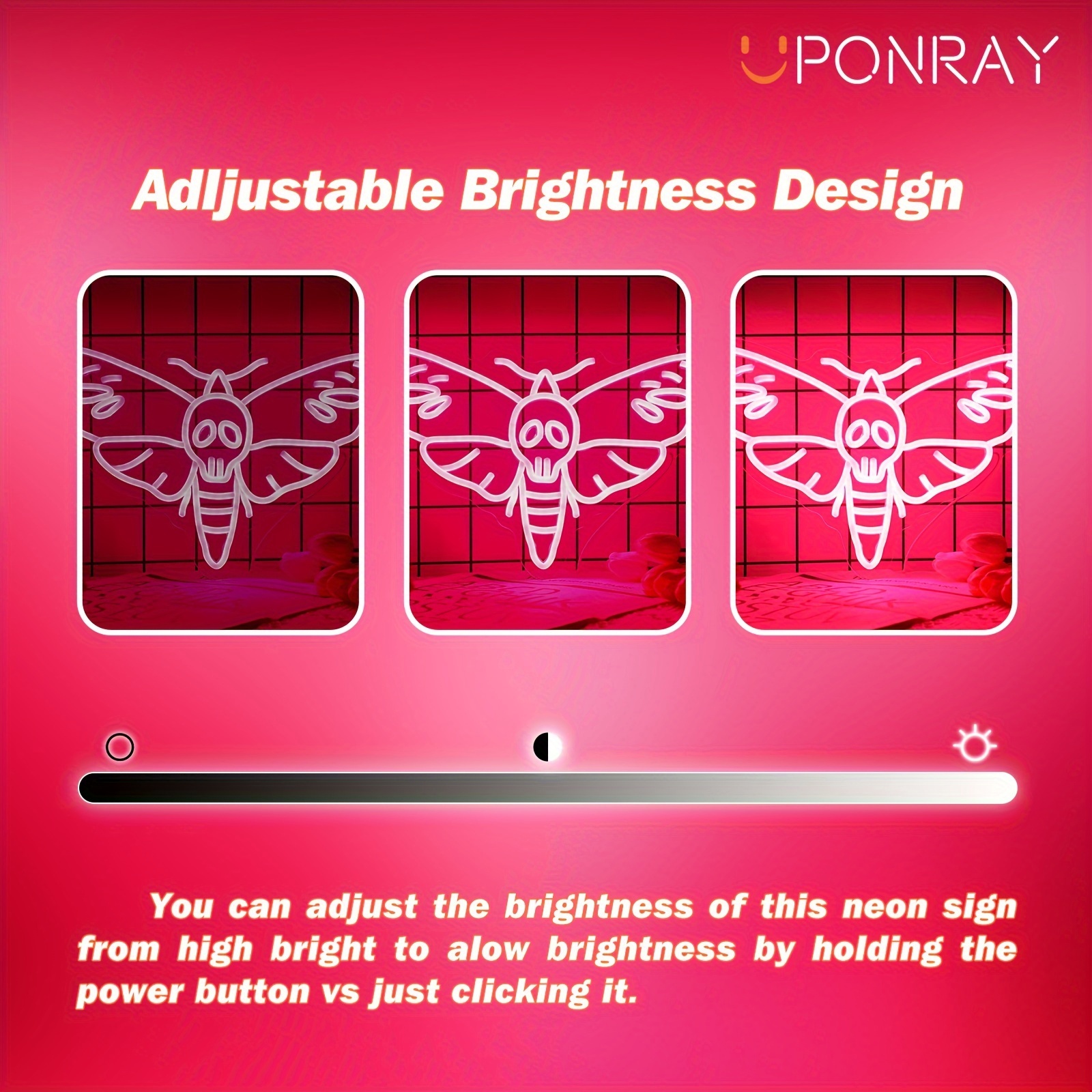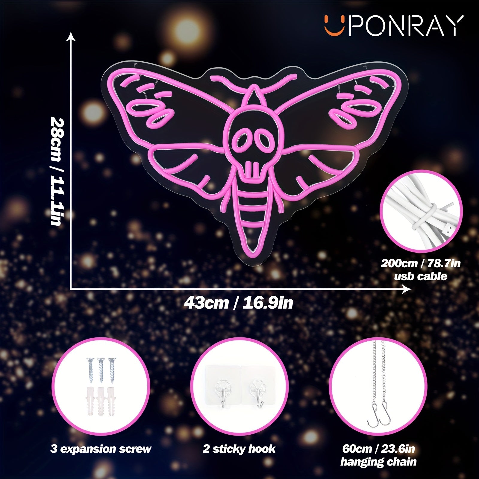 Death Head Moth Neon Signs, Death Moth Neon Light, LED Skull Butterfly Neon Sign for Wall Decor, Dimmable & Powered by USB Unique Insect Neon Lights for Collectables Tabletop Wall Art Home Decor Living Gallery Bedroom