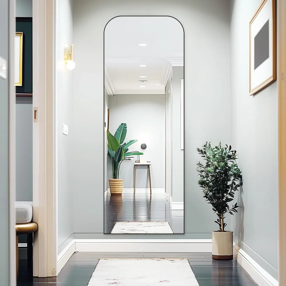 - Black Aluminum Alloy Framed Rectangle Floor Mirror: The full length standing mirror features a modern style that can complement any type of room decor, adding a touch of elegance to your room, move light around and create the illusion of depth and space. This full body mirror with sleek looking is also great for selfies or pictures in general