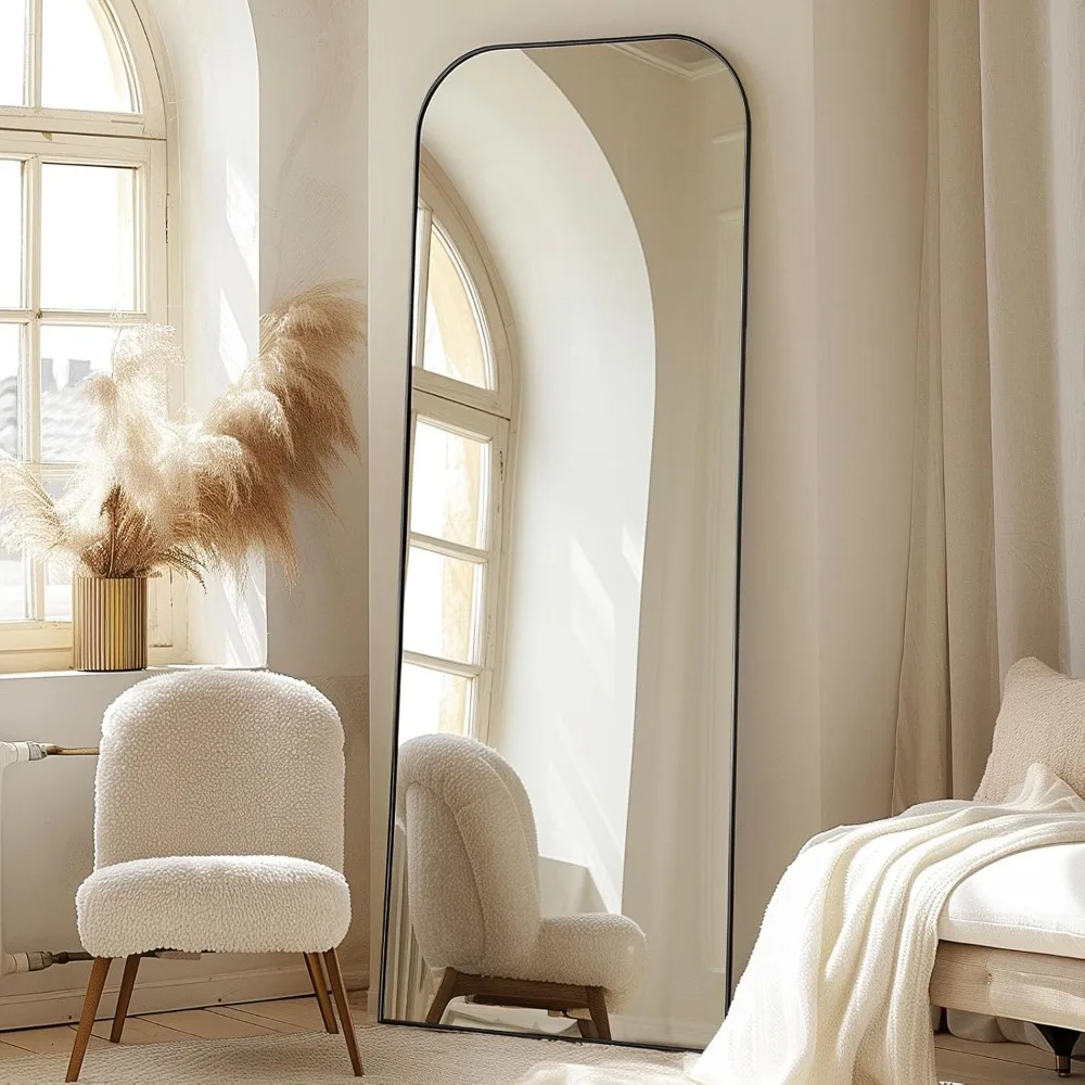 Full Length MirrorFreestanding Arched Floor Standing Mirror Full Body with Stand Hanging Wall Mounted for Living Room