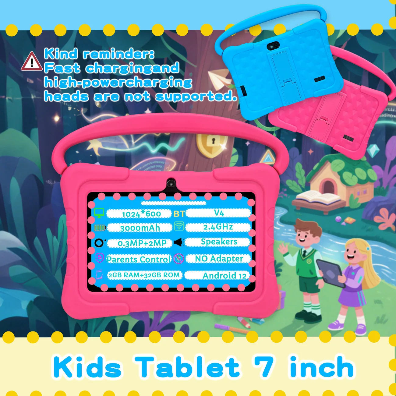 Kids Tablet – 7 Inch Android 12 Educational Tablet with Dual Cameras, Designed for Boys & Girls as a Fun Learning Gift , Blue