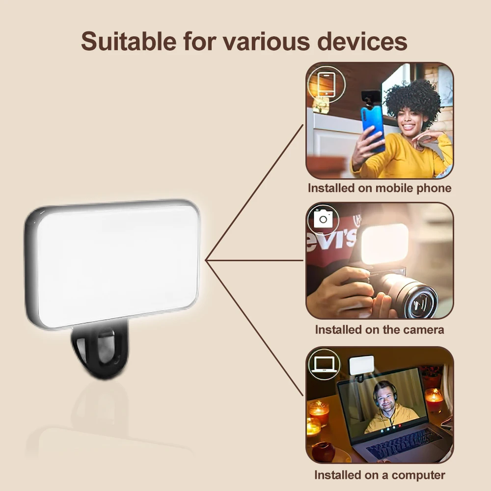 Portable Mini Selfie Fill Light Rechargeable 3 Modes Adjustable Brightness Clip On For Mobile Phone Make Up Computer Fill Light