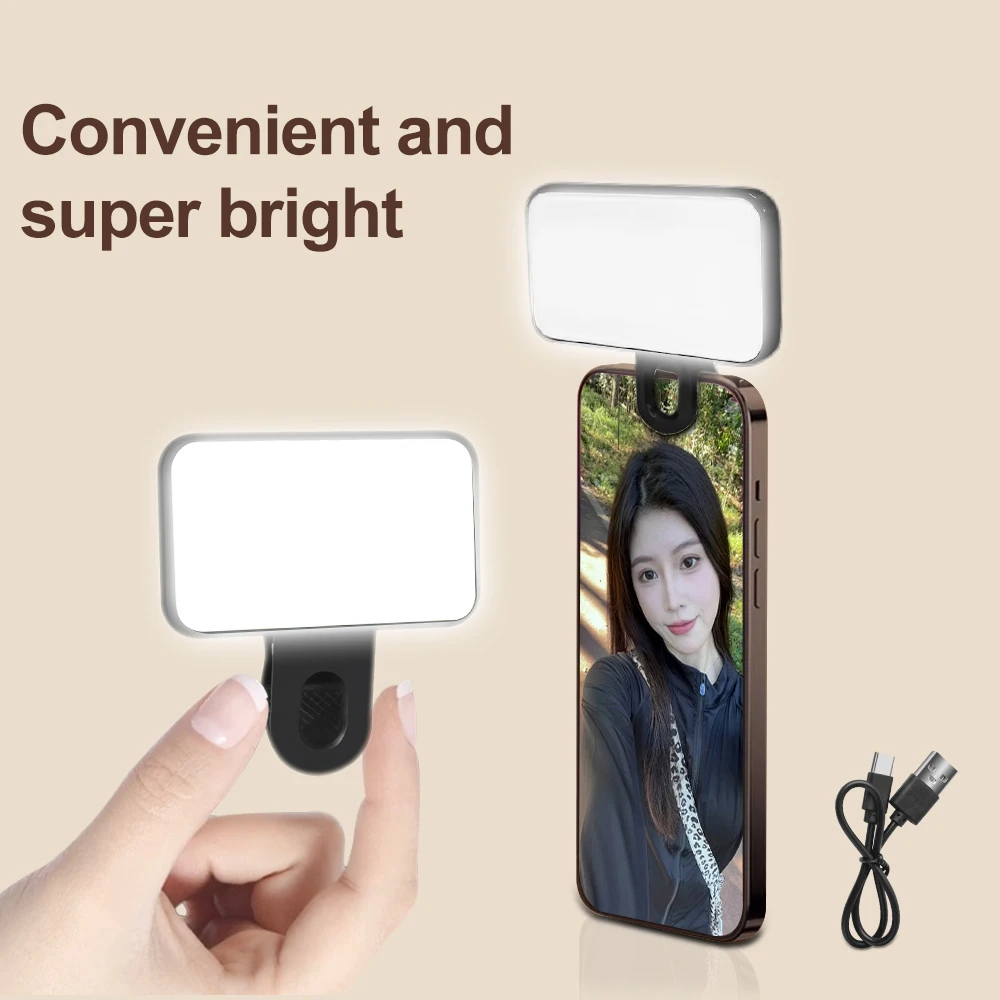 Portable Mini Selfie Fill Light Rechargeable 2 Modes Adjustable Brightness Clip On For Mobile Phone Make Up Computer Fill Light
