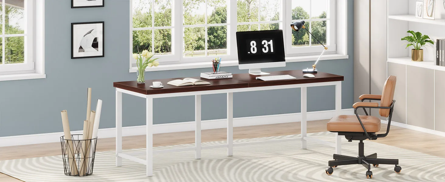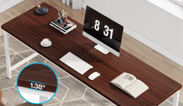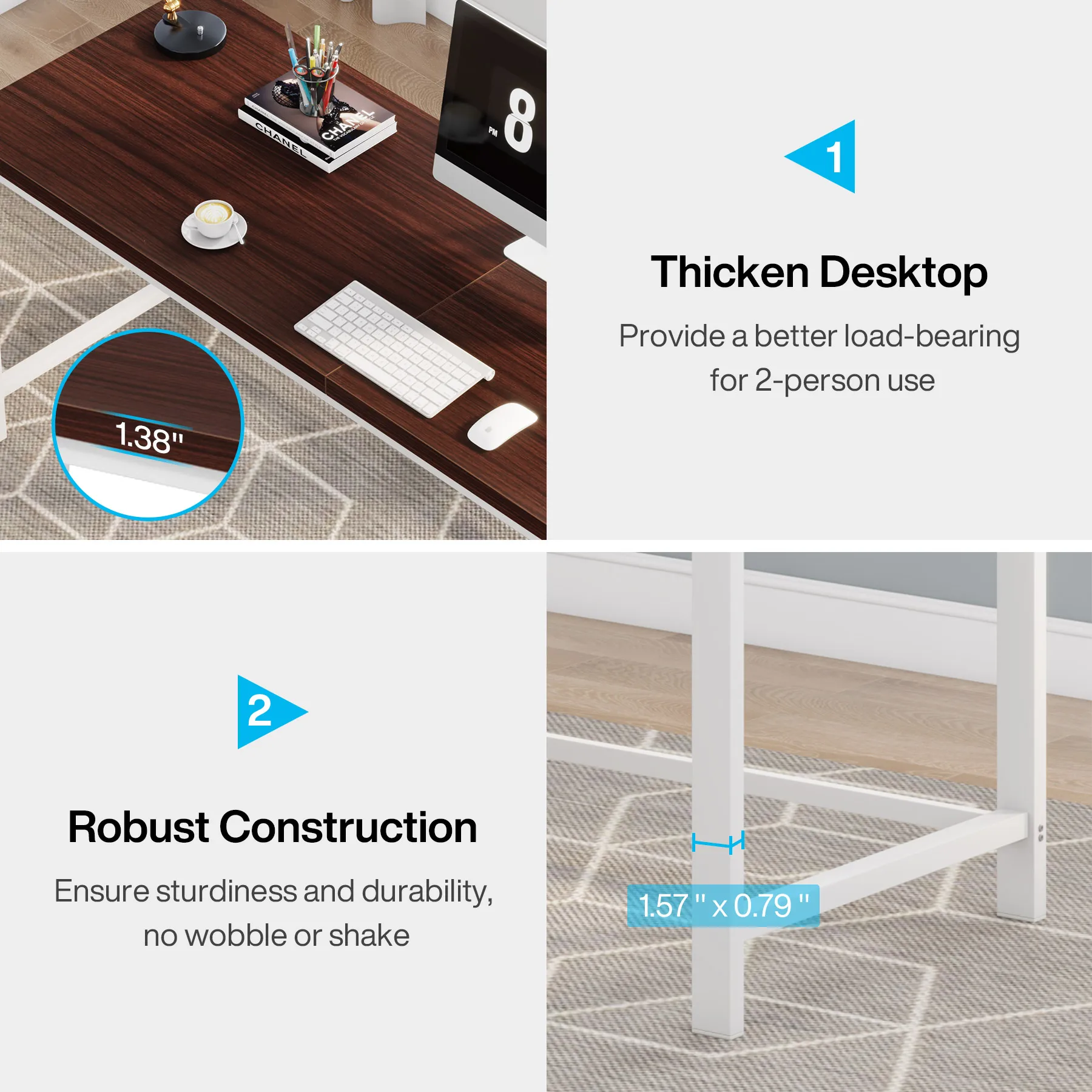 【Reliable & Sturdy Construction】The tabletop is crafted from 1.38" thick premium particleboard, combined with 1.18" heavy duty metal frame, our 2-person computer desk offers exceptional durability and long-lasting performance