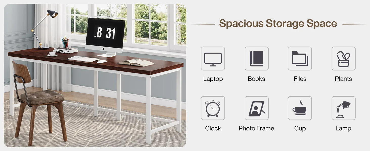 【Extra Long Desk Work Surface】 Measuring 78.7" L x 23.6" D, this long computer desk provide a spacious tabletop for place monitors, laptops, books, stationery and more essentials, allowing for a productive and clutter-free workspace