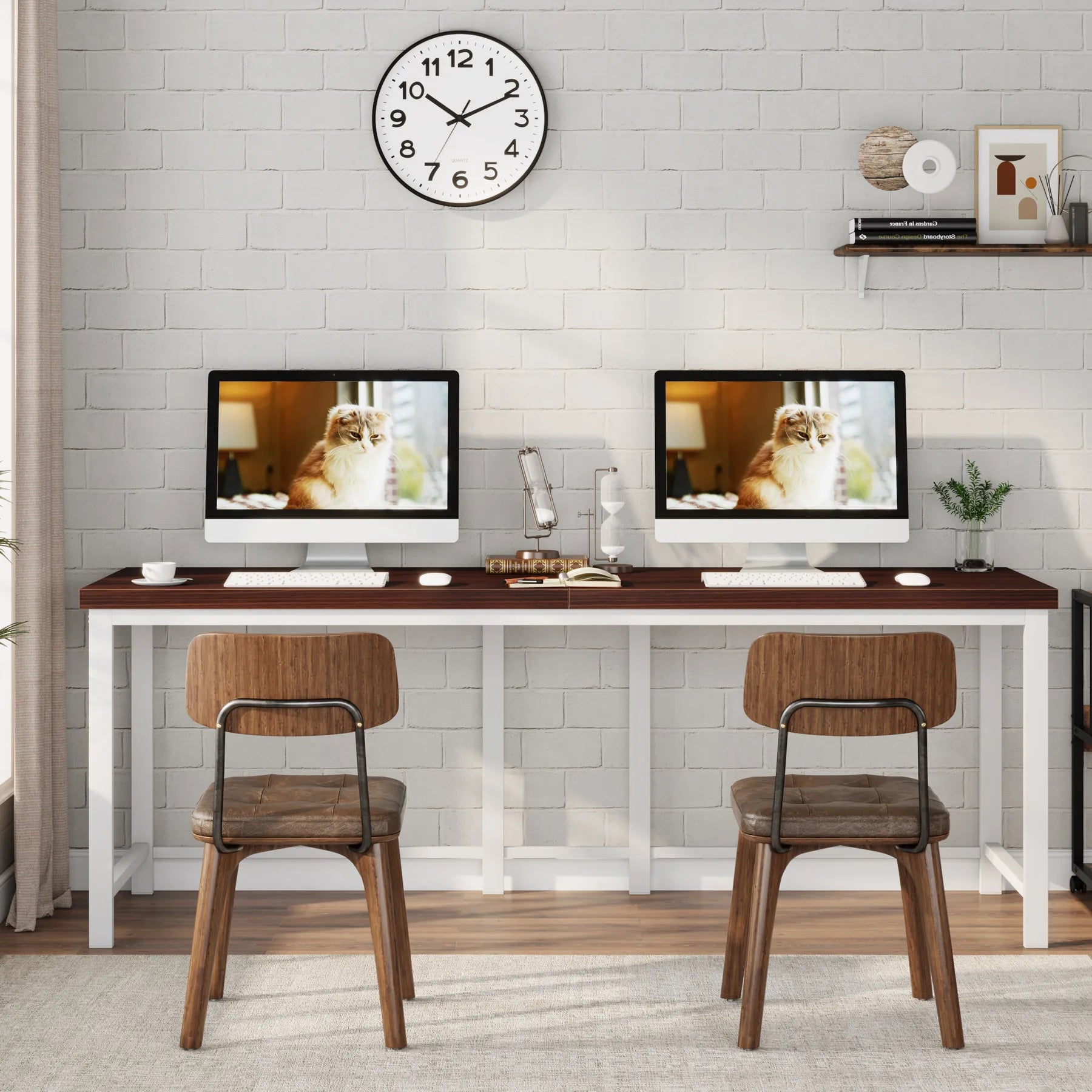 Tribesigns 200cm Double Computer Desk, Extra Long 2 Person Desk Workstation, Large Office Desk Study Writing Table
